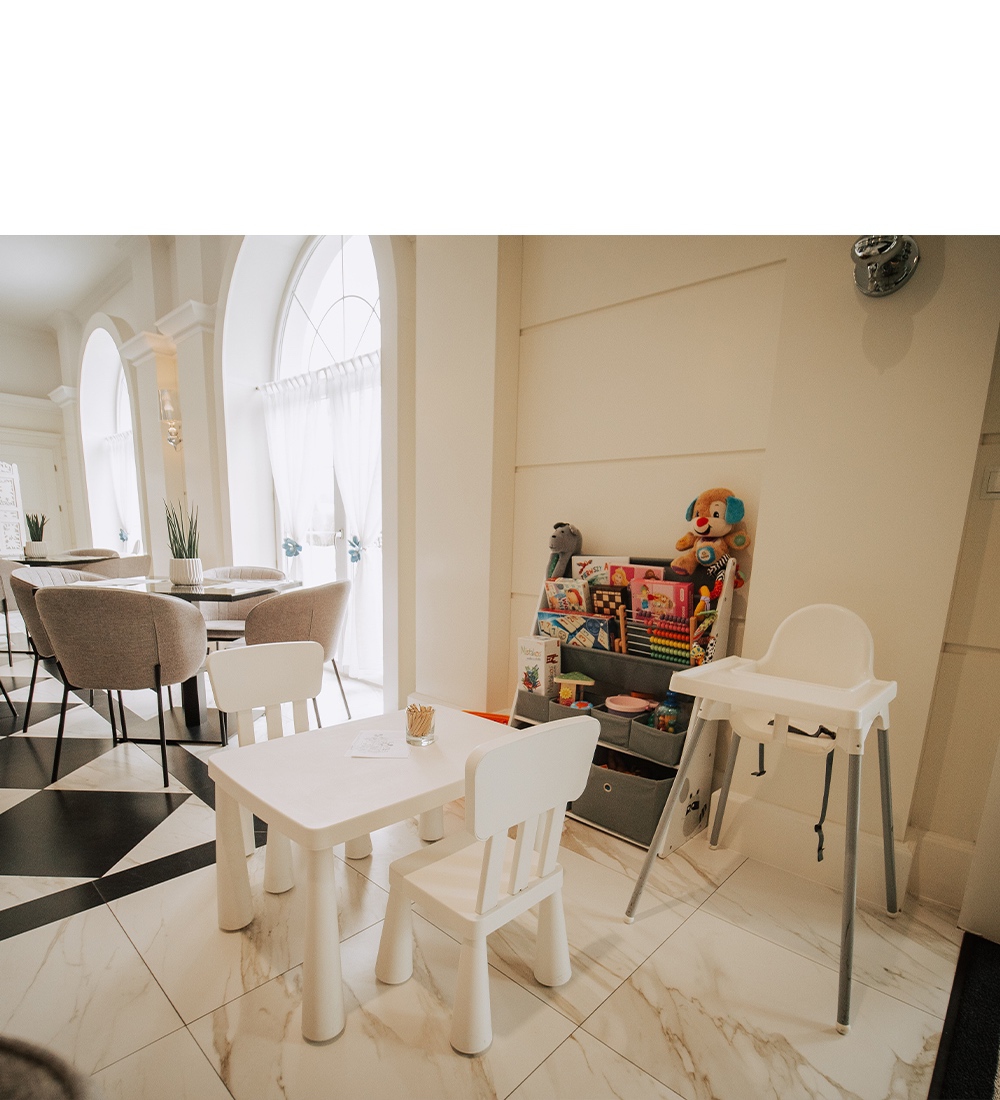 На території об’єкта чекає новий і великий ігровий майданчик, спроектований так, щоб діти могли вільно гратися. Це природний центр сімейного дня, куди повертаються між прийомами їжі, після прогулянки і тоді, коли потрібна порція радості без планування.